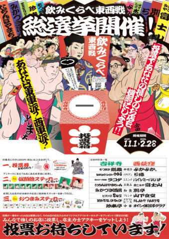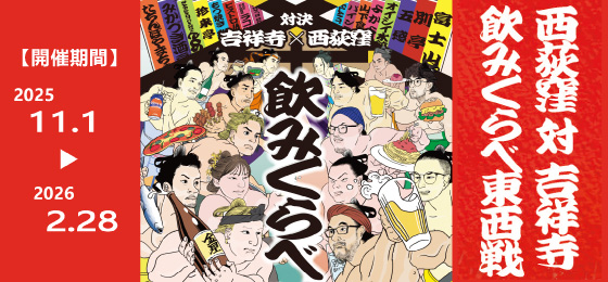 対決型グルメイベント『西荻窪×吉祥寺 飲みくらべ東西戦』を開催しております。