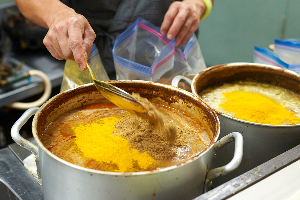 吉田:それはさておき、前々から友達になにか一緒にやりたいねと言われていたのですが、いよいよそれがレトルトカレーを作りたいと具体的になってきました。そのとき、僕の方はこの店が手狭になってきていたので、仕込み場を欲しいと思っていました。先ほど話した工場は、そのタイミングで、じゃあ一緒にできる場所を持とうとなり、レトルト工場兼仕込み場となるよう作ったんです。そこで仕込みをしつつ、レトルトカレーも僕が作る。あとはパートさんに詰めてもらうのですが……そういうシステムができれば、寝っ転がっていても売れる(笑)。